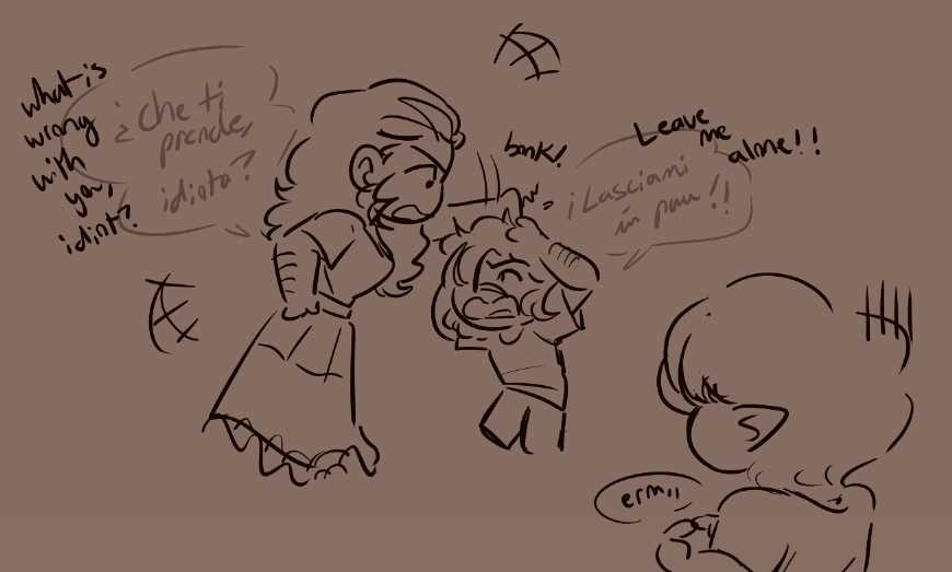 The town the family grew up in was a Spanish-speaking town, which was not a problem for the Bianchi's. The Malvolio's learned Spanish, but they also mostly spoke Italian with one another, leading to this current generation being fluent in both languages. Matias and Lucia only speak these two languages, Machiavelli is fluent in Italian, Spanish, and English, and Sofia knows Italian, Spanish, and is fluent enough in English to get by, though its not near as good as Vel's.