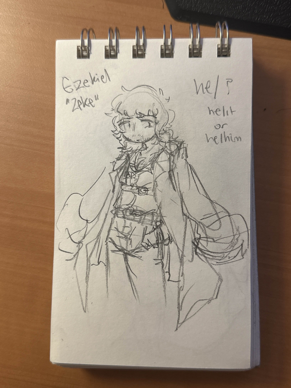 Ezekiel - nicknamed "Zeke" - is a part of an investigation agency dedicated to looking into various troublemakers around Gunsmoke. Said-agency had found Zeke in an abandoned SEEDS ship as an infant, and since then raised him beside their agency- hence why he now takes on their work. Similar to them, Zeke picked up a kid of his own: he travels alongside the worm creature Havoc, who he found and decided to watch over for now since the little bug seemed quite destructive. He also travels with Roxanne, who claims to be apart of a different investigation agency; though, she seems oddly intent on sticking by him, for reasons he hasn't been able to gather yet...